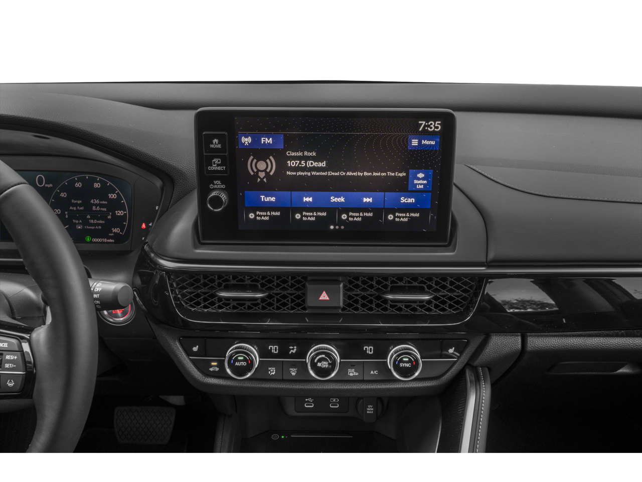 • Radio: AM/FM Acura Premium Audio System -inc: 8 speakers, 9" color touchscreen, Wi-Fi hotspot capability, AcuraLink, AcuraLink connected services, wireless Apple CarPlay and Android Auto compatibility, Bluetooth® HandsFreeLink, Bluetooth® streaming audio, 3.0-amp USB-C smartphone/audio interface w/USB-C charging ports, wireless phone charger and Speed-Sensitive Volume Compensation (SVC)