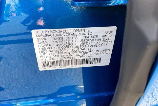 - Front Tire Size: P255/50HR20